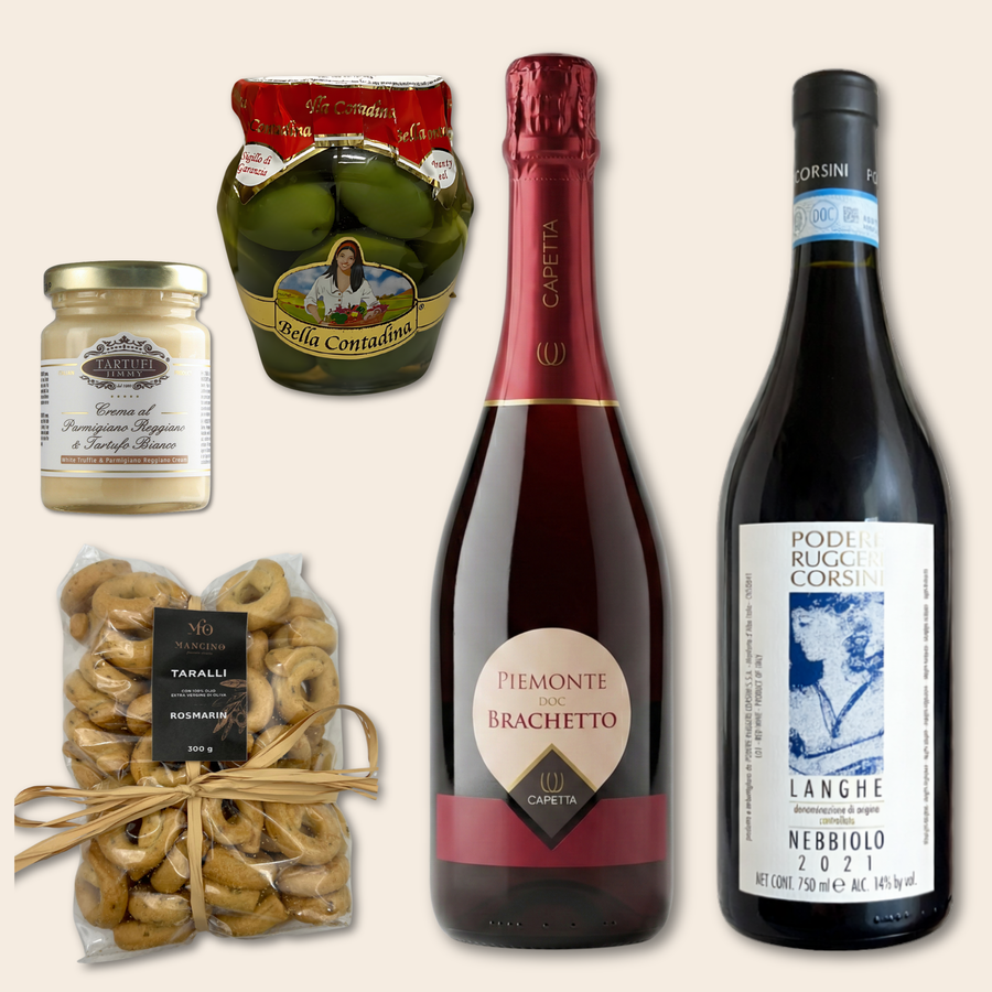 Fejr en særlig kærlighedsdag med en eksklusiv gavekurv fyldt med bobler, chokolade og gourmetprodukter. En gave, der signalerer kærlighed og omtanke.