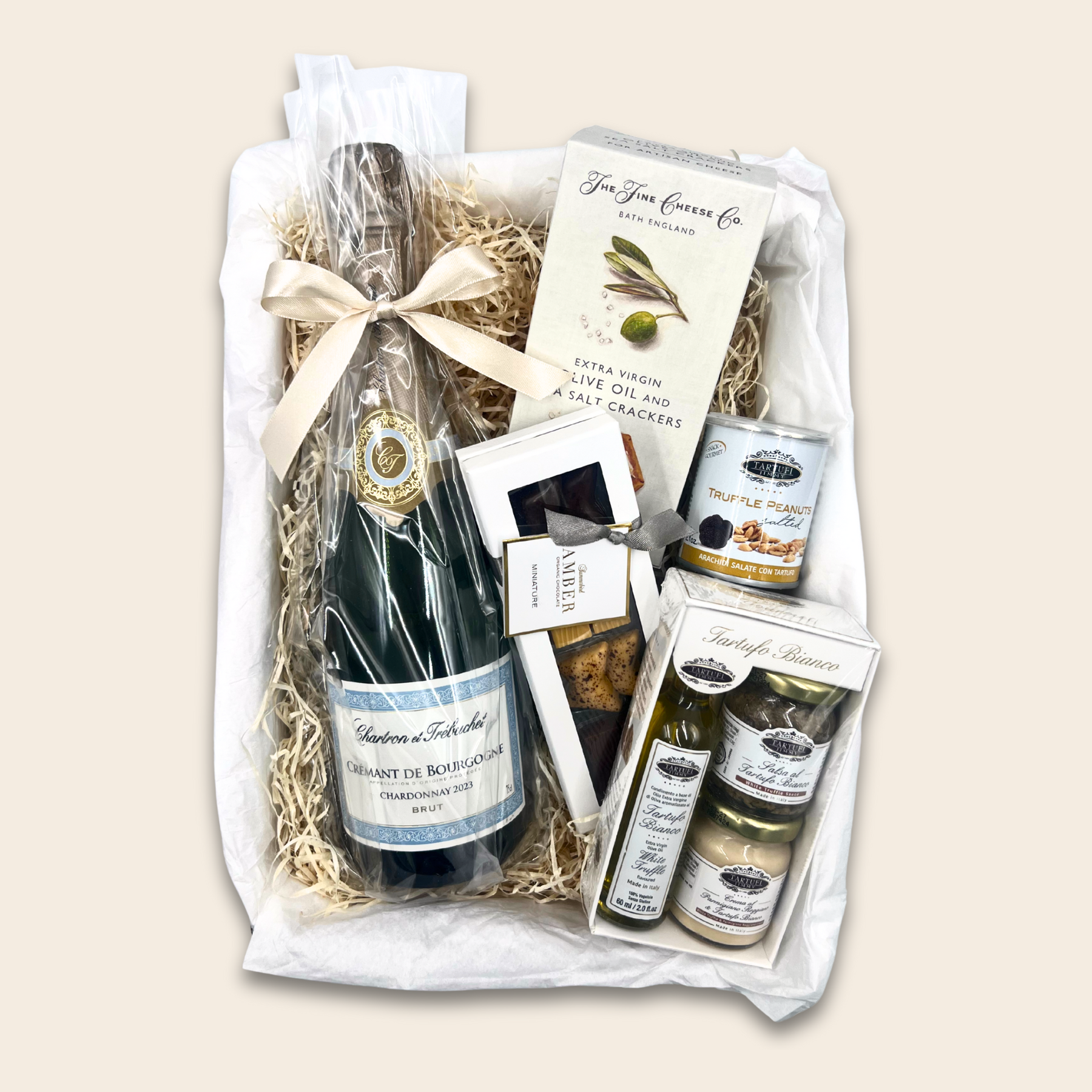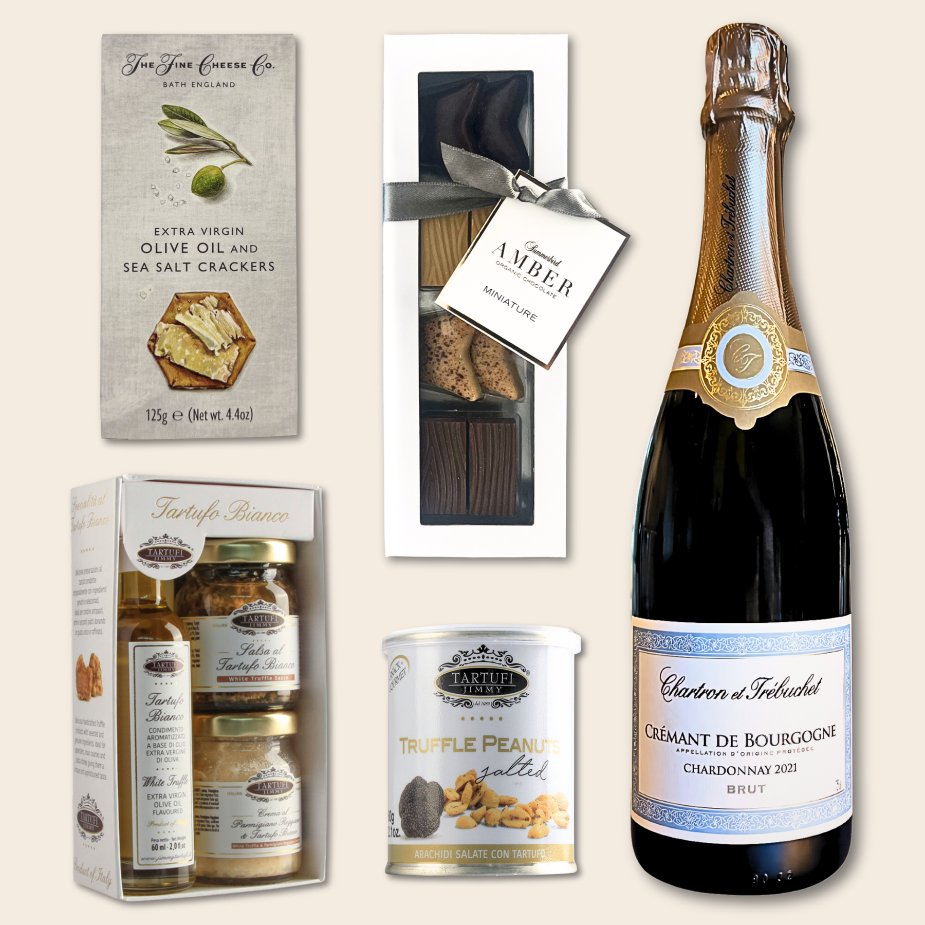 - Hvid Trøffel-Gavesæt: Et eksklusivt gavesæt med hvid trøffelolie, hvid trøffelsalsa og et glas med Parmigiano Reggiano & hvid trøffelcreme.