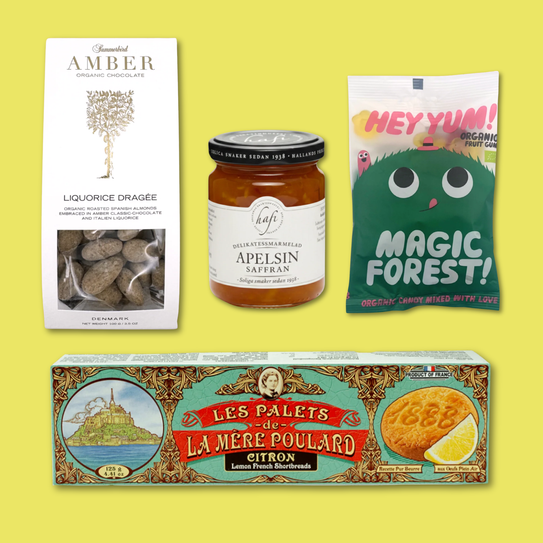 Den delikate marmelade med appelsin og safran bringer varme og dybde, de sprøde citron shortbread småkager tilfører friskhed, og den økologiske vingummi giver et legende, farverigt indslag. De eksklusive lakridsdragéer med chokolade runder smagsoplevelsen af og det hele giver en samlet påskestemning.