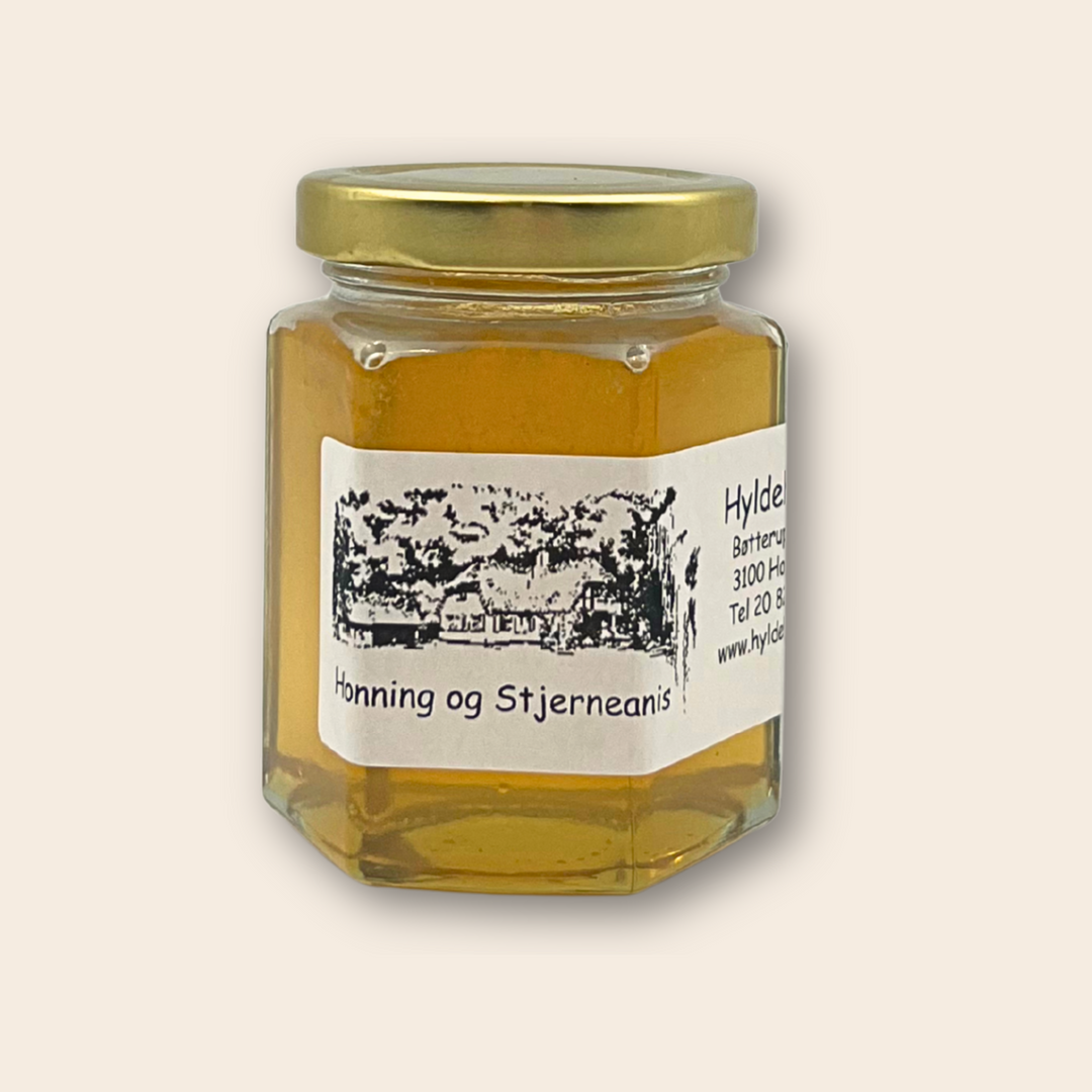 Denne honning er tilsat stjerneanis, som tilfører en let lakridsagtig smag og en varm, krydret dybde. Den søde danske honning danner en blød base, hvor stjerneanisens karakteristiske smag får lov at træde frem – elegant og afbalanceret.