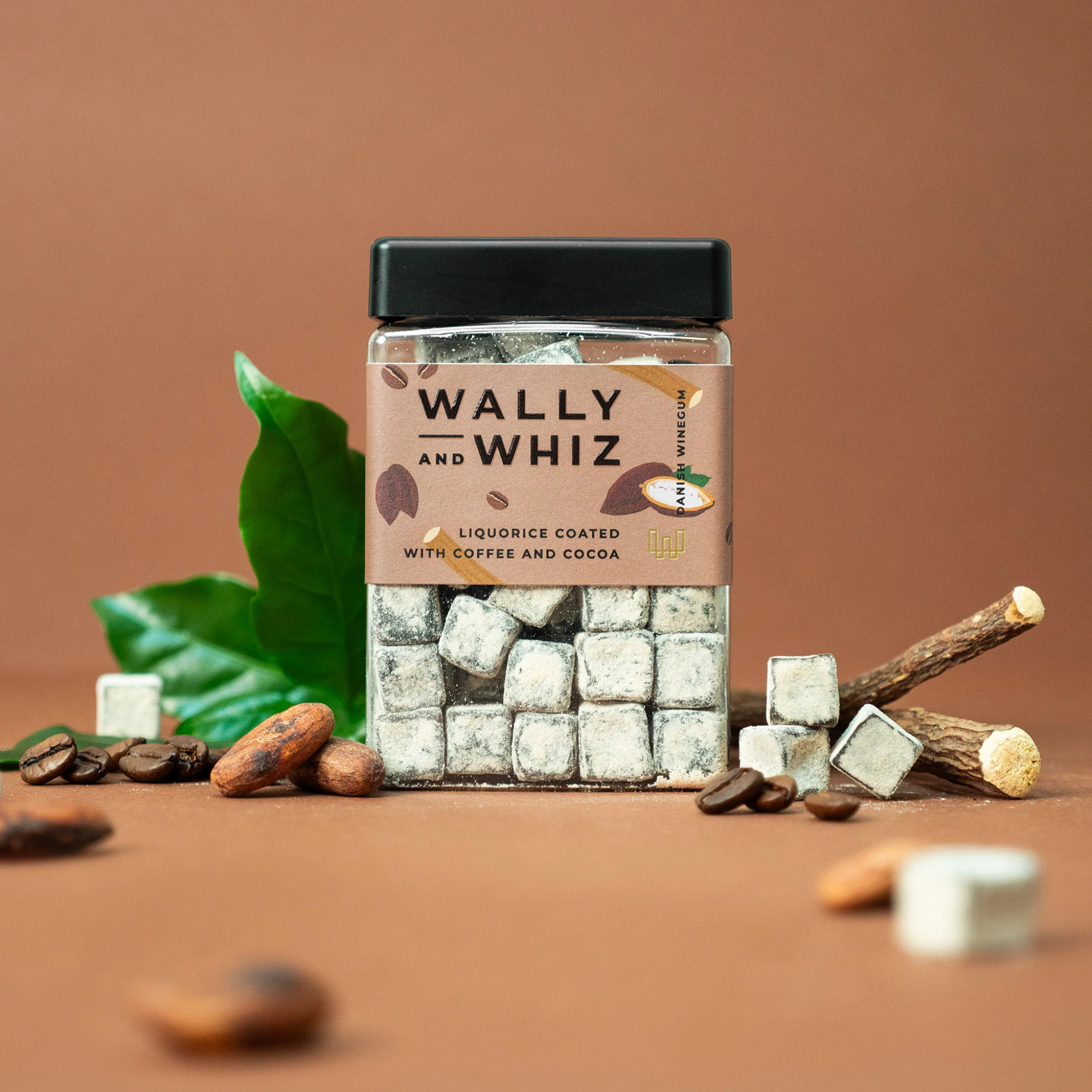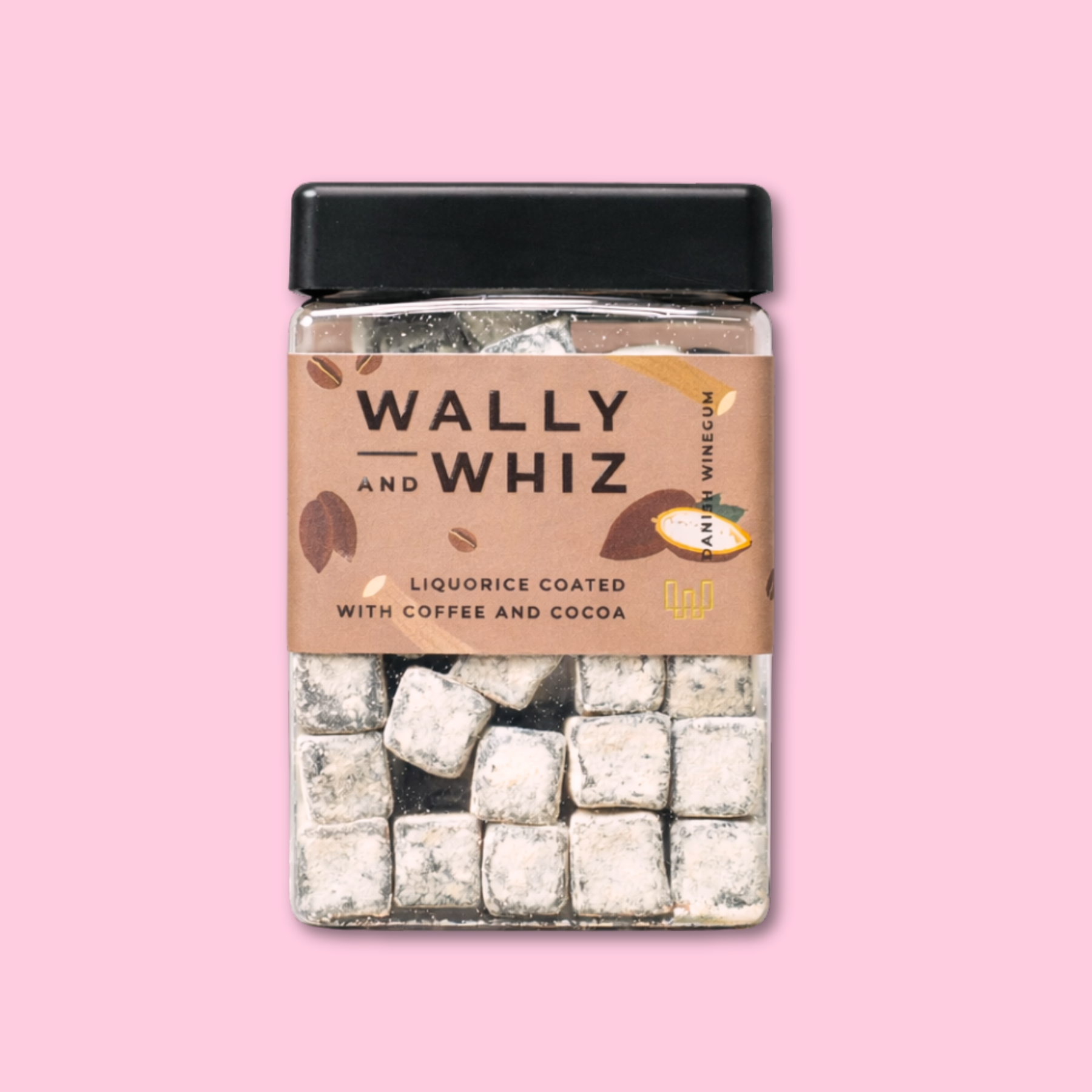 Blød lakridsvingummi vendt i en fin blanding af kaffe og kakaopulver, som tilfører en dyb og raffineret smagsdimension. Den intense lakrids danner base, mens kakaoens let bitre nuancer og kaffens aromatiske varme skaber en fyldig og balanceret helhed.