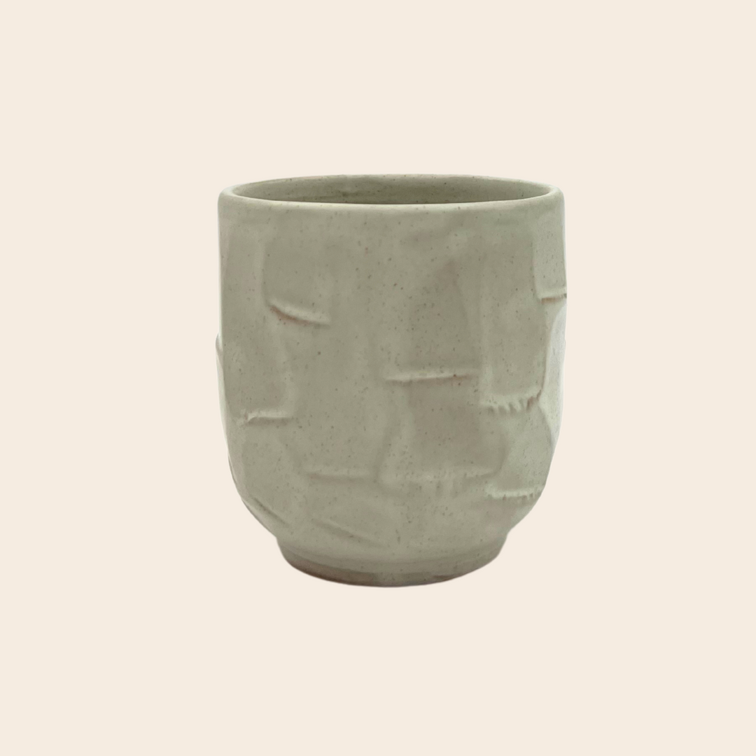 Denne smukke keramikkop er mere end blot en kop – det er et stykke håndlavet kunsthåndværk, skabt under fairtrade-betingelser og med omtanke. Med sit japansk-inspirerede design og den bløde, råhvide matte glasur har koppen et elegant og unikt udtryk.